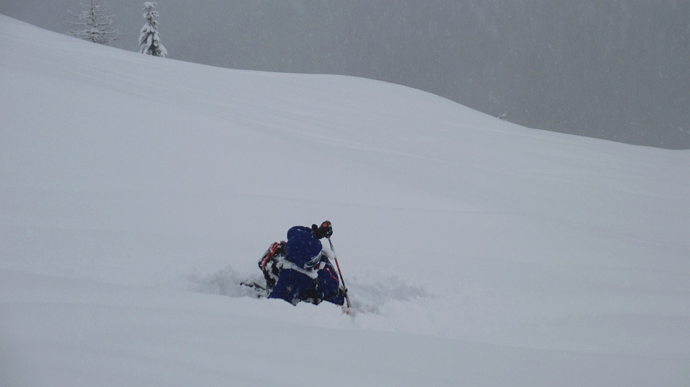 Oggi grande giornata di boschetti a SMDC. In alto bella neve ma scarsa visibilità, in basso neve umida e non chapmagne powder. C'è davvero tantissima neve: sciando non te le accorgi ma basta "bussolare" e ti accorgi che la racchetta va giù tutta e di più :shock: