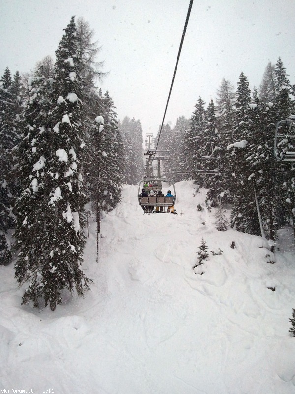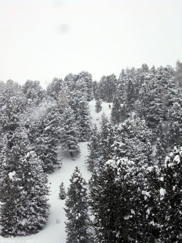 Domenica 19: nevica, lato Arabba il collegamento è chiuso, pertanto visto il pericolo valanghe ci dedichiamo a qualche giro a Canazei Belvedere sulla pista Diego non battuta. Poi ci dirigiamo verso il passo Sella e giriamo un po per i boschi di Ciampinoi.