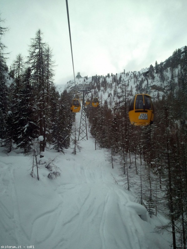 Lunedi 20: il tempo è in miglioramento, con gli impianti arriviamo alla funivia del Sass Pordoi e prendiamo una delle prime corse. E cosi' esce il sole e riusciamo a farci 3 giri su una forcella quasi intonsa. Quando inizia a scaldare e la forcella è triturata passiamo al versante nord e scendiamo per la Val Lasties appena tracciata. Anzi ringraziamo quei pochi sciatori che ci hanno preceduto perchè cosi' hanno battuto traccia sui piatti e in uscita!