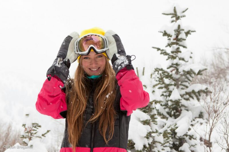 Sierra Quitquit che si siede al tavolo di fronte al mio in attesa della partenza del Freeride Engadine snow by Dakine. Engadinsnow 2014.