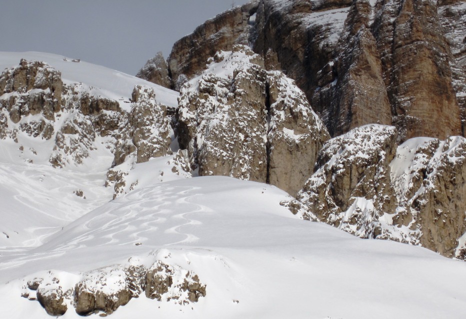 Sempre e solo Sass Pordoi: forcella, canale delle Torrette, Lasties, Joel (2 volte) con vallone dell'Ossario