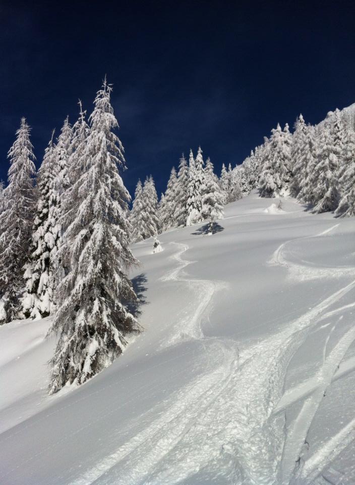 Di solito non pubblico foto qui sul Forum, specie quelle fatte nel "giardino di casa", però erano anni che non trovavo condizioni di innevamento del genere a Pramollo e allora condivido qualche foto della sciata in solitaria di mercoledi