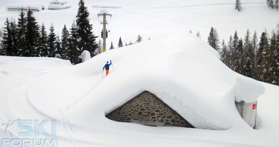 Immagini che per la prima volta mi hanno trasmesso un leggero senso di paura. La neve è talmente tanta che non si riesce nemmeno ad immaginare alle valanghe che potrebbero partire. Speriamo tutto resti su fino ai primi caldi primaverili e anche oltre.