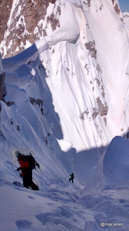 Salita:tranquilla fino al primo tratto del canale, poi in base alla qualità della neve si sale con tavola in spalla. Nell'ultimo tratto meglio passare sulla destra.