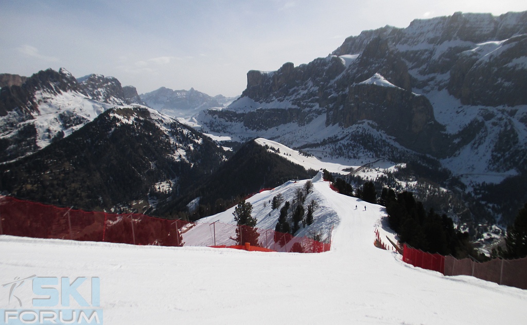 Saslong nera in condizioni indescrivibili: dai Sochers in giù neve firn con millerighe.