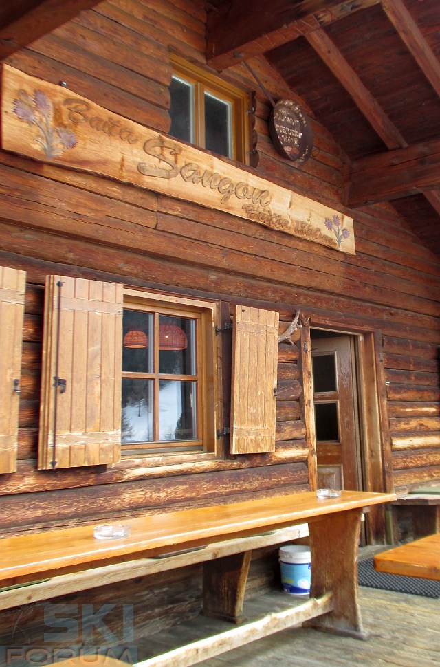 Bellissime curve su una delle neve più facili e belle che si possono trovare! Dopo un’altra pista è ora di un panino. Baita Sangon Hutte: proprietario super simpatico e gentile, posizione soleggiata e panoramica. Ottima struttura.