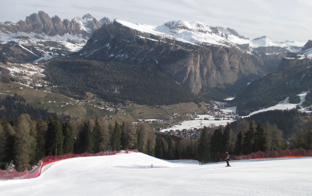 A Ortisei il paesaggio sembra estivo eppure la Longia ha neve migliore di molti “febbraio”.