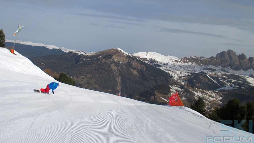 Di nuovo su al Ciampinoi ed ora una Saslong B pista “sorella” della famosa Saslong nera. Molto bella: tratto da carving iniziale, 3 curvoni in serie favolosi, stradina di riposo e ultime curve passando a fianco del castello Castel Gardena.