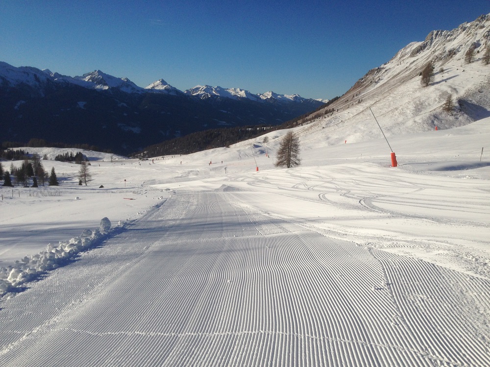 In questo pazzo inverno, caratterizzato da temperature miti e privo di precipitazioni nevose, decido di orientarmi verso valli che fanno dell'innevamento programmato il loro punto di forza; mai scelta fu più azzeccata.