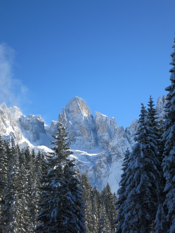 e anche entrando nel bosco, le Pale sono sempre là, splendide presenze immobili :skiamo: