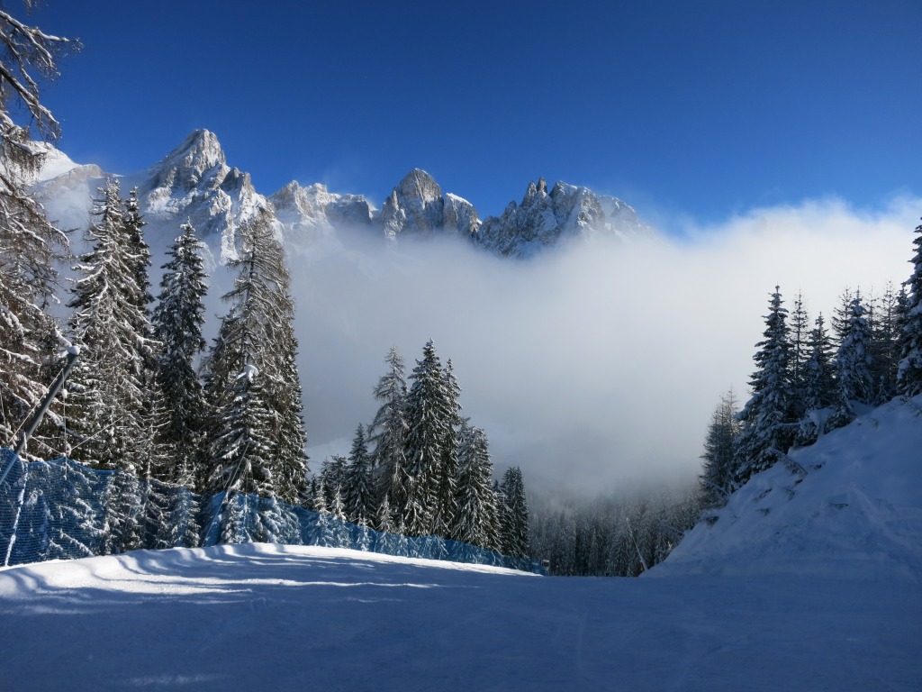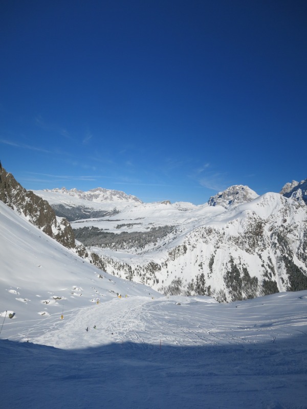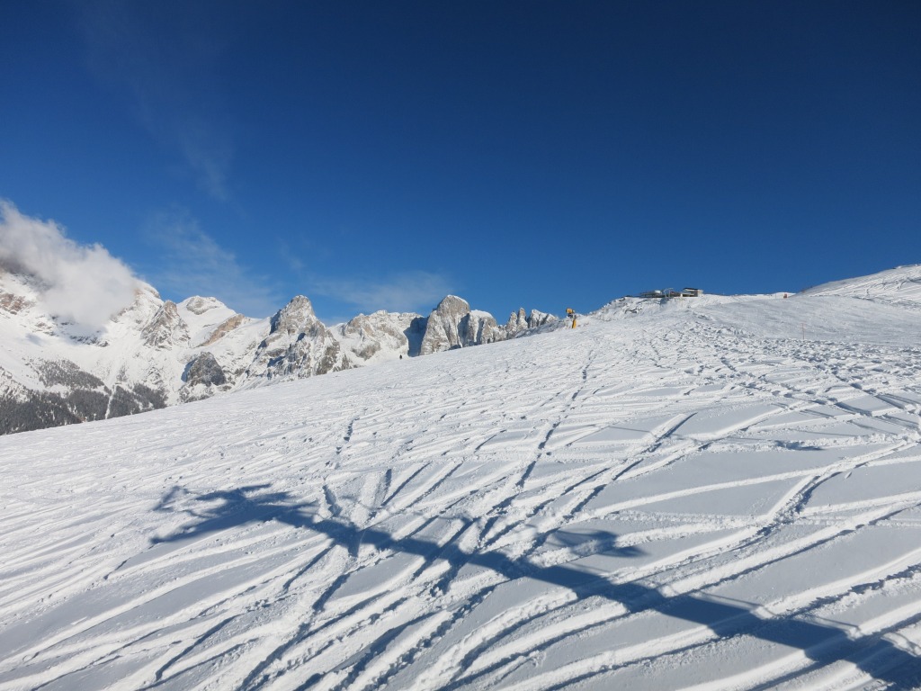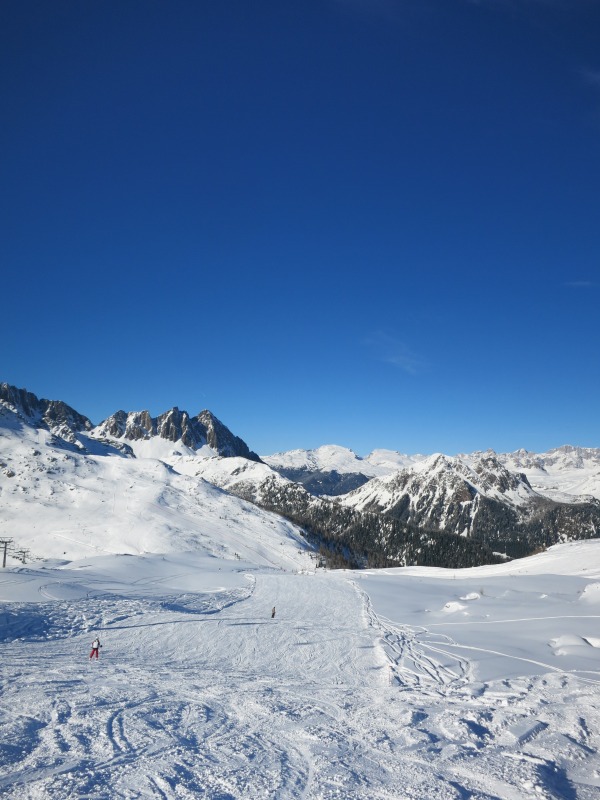 e a scendere poi per l' omonima pista, tanto per cambiare con vista sulle Pale