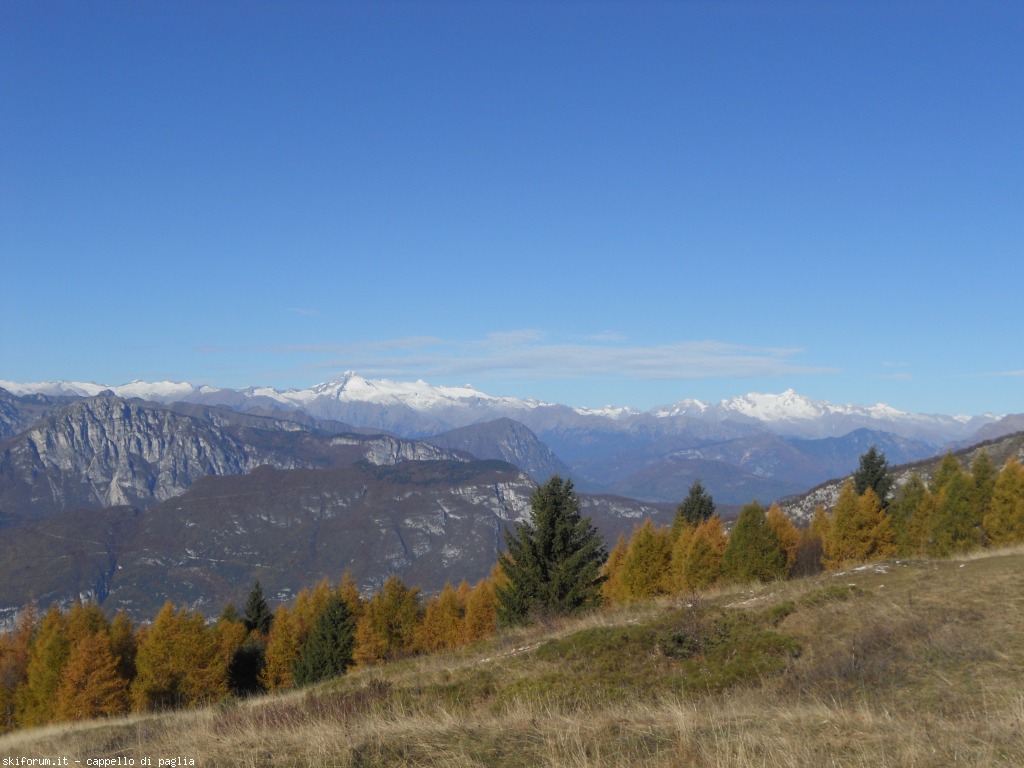 Subito gli spazi sono vasti, i panorami grandiosi....lo Stivo con i suoi colori, i giganti bianchi dell'Adamello e della Presanella, l'azzurro del lago, le frastagliate cime delle prealpi....bello :skiamo: