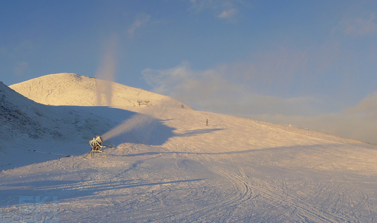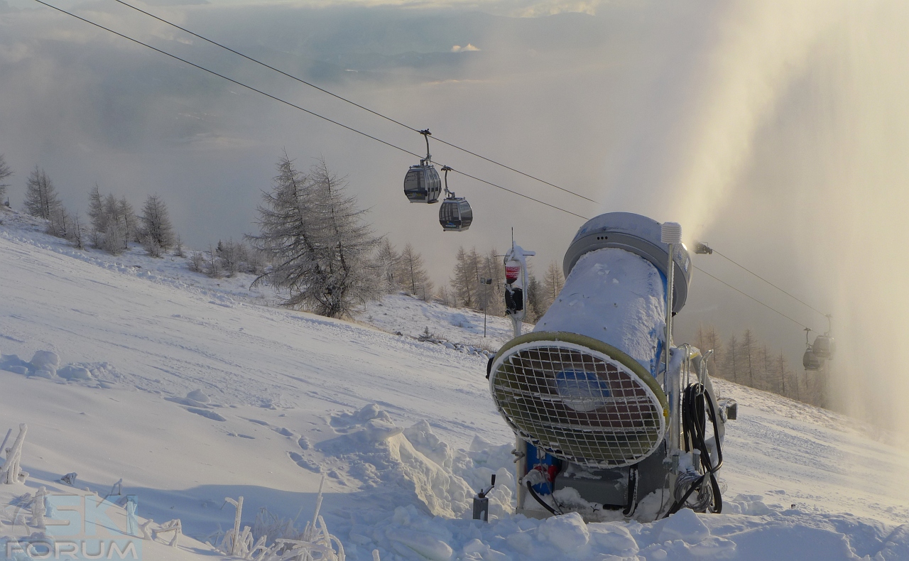 E insieme al bel tempo è arrivato anche il freddo: gli operatori non hanno perso tempo e hanno acceso "a cannone" i vari cannoni. Visti da vicini fanno impressione! Quando fatti funzionare al massimo producono moltissime "goccioline di ghiaccio".