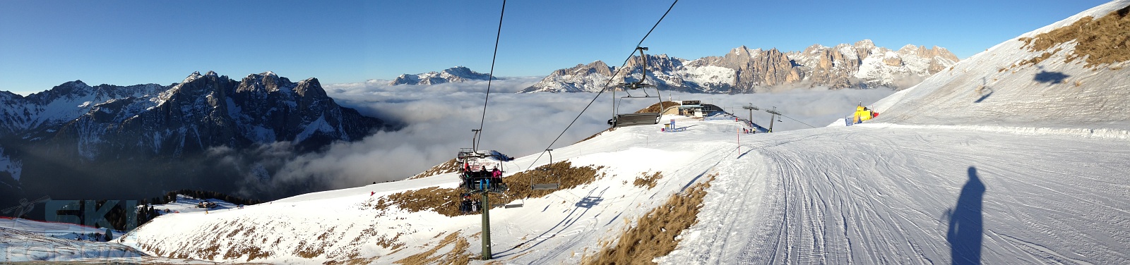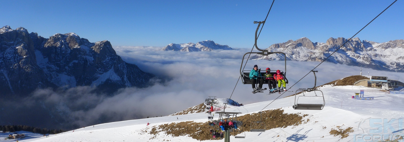 Funivia Col dei Rossi, Doleda, funivia Alba-Ciampac e seggiovia di Sella Brunech e alle 16 siamo a Sella Brunech.