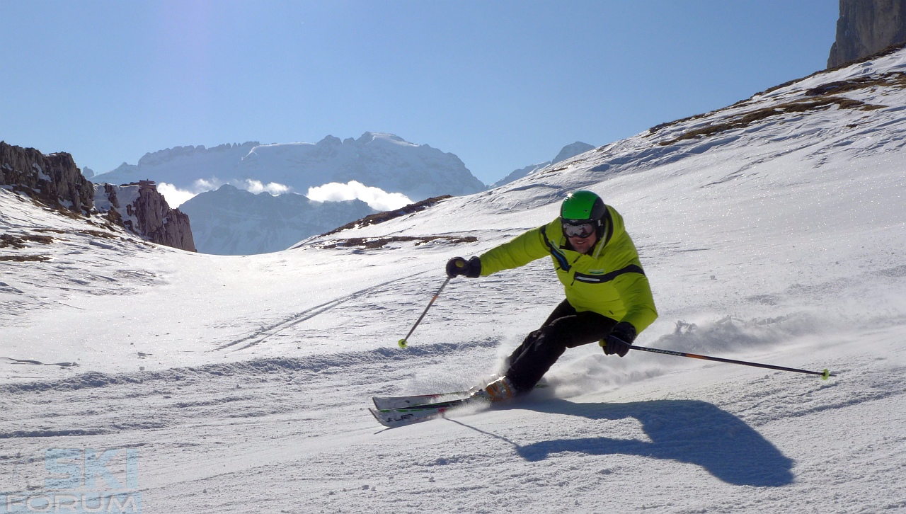 Iniziamo a scendere verso Passo Campolongo e la Val Badia alle 11.30. La pista Rutort si ri-ri-riconferma una delle mie preferite della stagione: aspettando di averla libera da cima a fondo è sempre piacevole da "sparare".