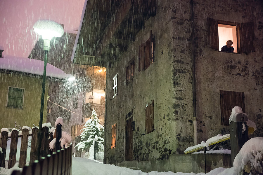 Sabato le dolomiti sono state investite da una breve ma intensa perturbazione che ha scatenato temporali di neve con lampi e tuoni al seguito. La neve è scesa fitta e grossa senza mollare un secondo. Quel pomeriggio mi trovavo ad Alleghe, mettendo a dura prova la tropicalizzazione della mia attrezzatura ho girato il paese per fotografare l’evento.