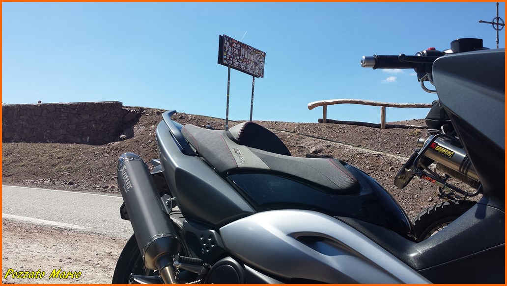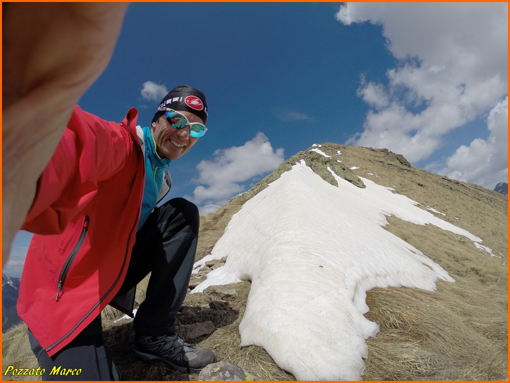 Arrivato dopo 140 km al passo decido all'ultimo minuto di salire alla cima Ziolera,poco piu' di 400 metri di dislivello,ancora parecchio innevata tant'e' che in discesa mi son divertito a sciare con le scarpe su 5 cm di firn.Era soprattutto un desiderio della mamma di David rivedermi,me lo chiese il giorno dell'estremo saluto a Gennaio,come non poterla accontentare una mamma che perde un figlio per un banale incidente.