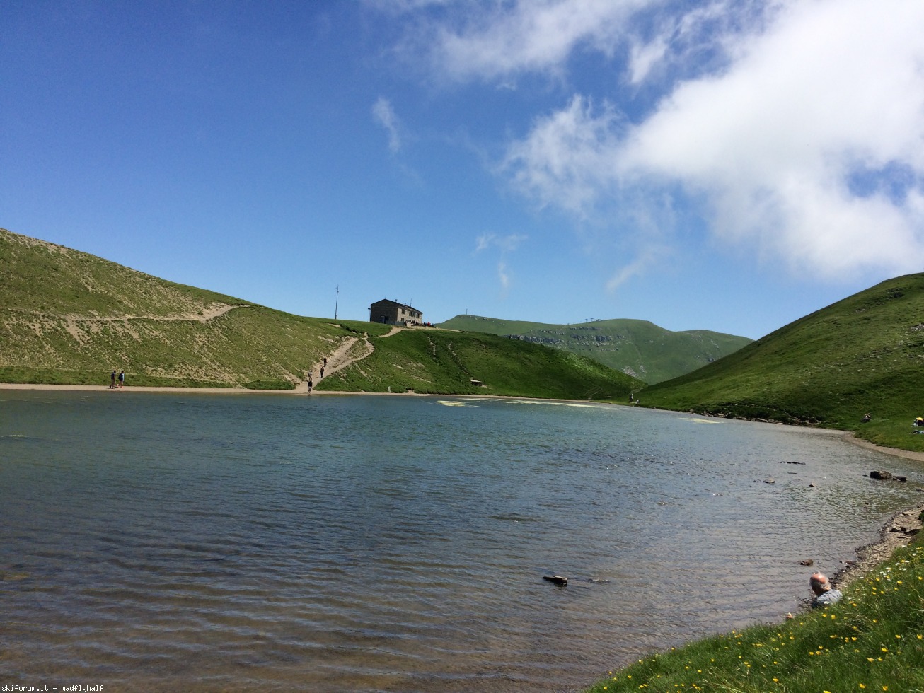 In 1 oretta di foto e chiacchiere arrivi al lago Scaffaiolo, con il rifugio Duca degli Abruzzi dove si mangia bene, ma prevedendo l'affollamento e incontrando un alimentari sulla strada, meglio crescenta farcita di prosciutto nostrano e star leggeri