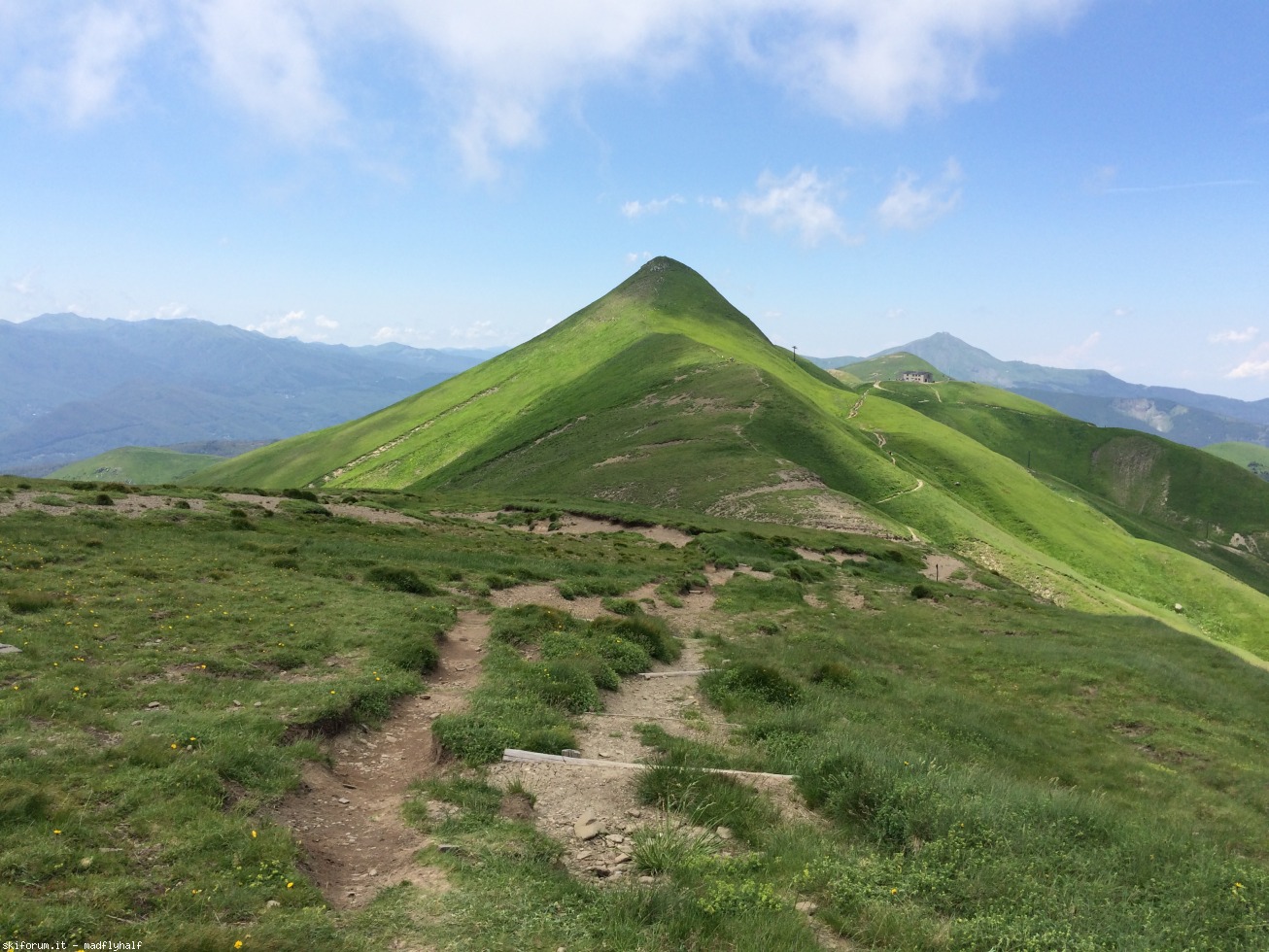 Lo Strofinatoio in lontananza, sotto di esso la capanna del Sasseto e il sentiero che in 40' ci riporta alla macchina