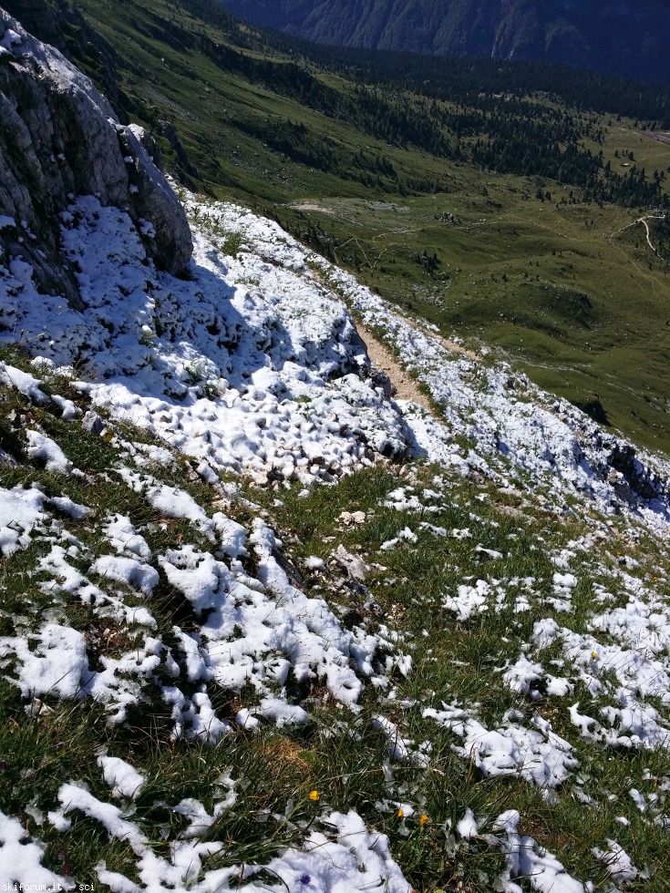 Poco dopo i 2000mt si iniziano a scorgere le prime residue tracce di neve, in rapido scioglimento.