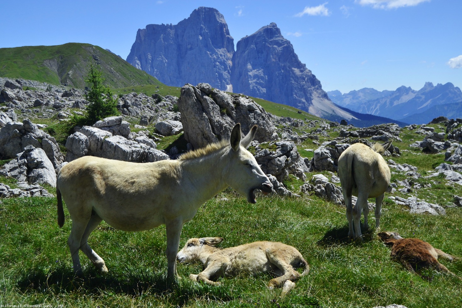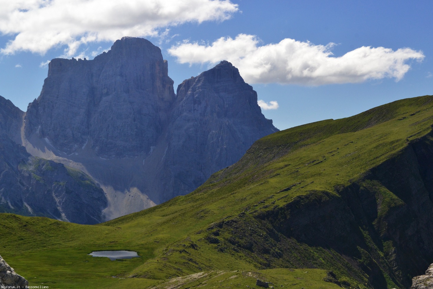 Un itinerario molto bello che consiglio. Partenza dal Passo Giau 2236m e sentiero che conduce alla Forc. Giau 2360m con i Lastoi de Formin a sx, ai prati di Mondeval, alla forc. Ambrizzola 2277m e poi al Rif.Palmieri-lago Fedara 2046m sopra Cortina. Tempo 5h. Dislivello non esagerato ma salite comunque di tutto rispetto. Ampie vedute su Pelmo, Civetta, Marmolada, poi tutti i gruppi che dominano Cortina. Molto buoni anche i canederli del rifugio con birra media, ma consiglio prudenza nel ripartire a stomaco pieno. Aneddoto : una signora ovviamente di livello Vip ha tenuto in scacco 10 posti tra i tavoli, mentre io e Cris ci siamo accomodati in un tavolo con simpatici signori tedeschi, poi quando sono arrivati i suoi amici ha cambiato postazione.