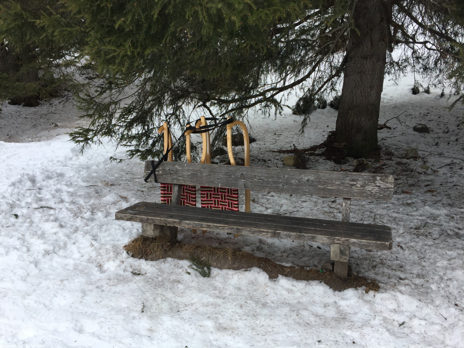 La salita è davvero ripida, con molte zone in ombra: per il ritorno in discesa, quindi, è consigliabile portarsi delle racchette per aiutarsi e non scivolare... a meno che non si voglia utilizzare gli slittini, che sono a disposizione presso il rifugio Senes (lungo il percorso, all'andata, se ne trovano diversi... che poi non troveremo più al ritorno):