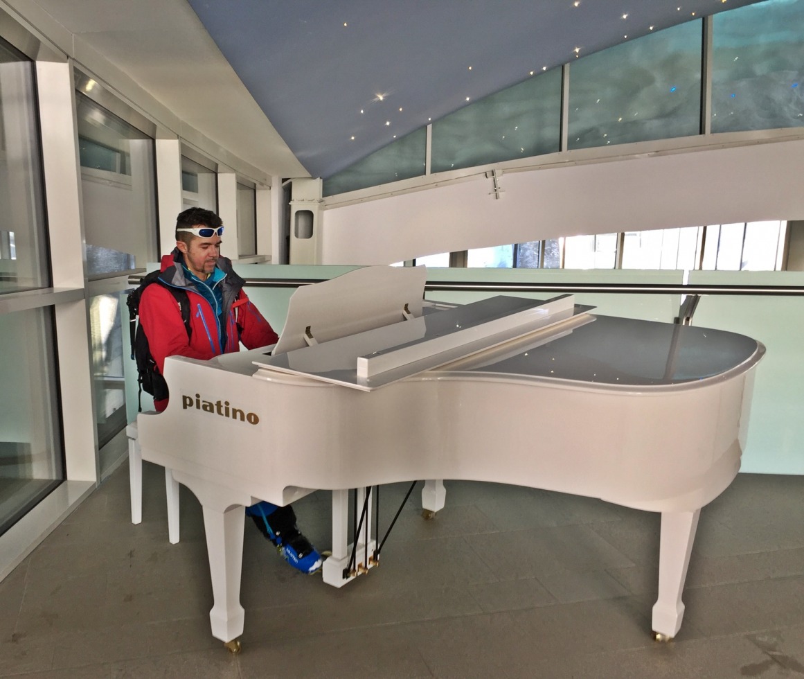 Punta Helbronner è un posto un pò particolare. Si tratta promontorio roccioso a circa 3500m ed è popolato da alpinisti carichi di ferraglia e da freeriders incazzati bardati come astronauti... che si mischiano come se niente fosse a sciure in pelliccia , a giapuneis con le tods e le macchine fotografiche da 6000 euri ed alle famigliuole con i bimbi al seguito attaccati al cellulare... Ma sia i bimbi che gli adulti dal cellulare si staccano subito appena salgono sui cabinoni rotanti dello skyway ed iniziano a guardare fuori dai finestrini...