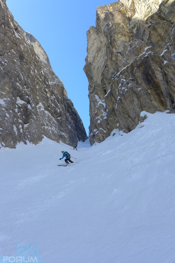 La difficoltà nella discesa, in pieno stile "learning by doing", dipende sì da quanto ripido è il canale ma parimenti dalla qualità e compattezza della neve.