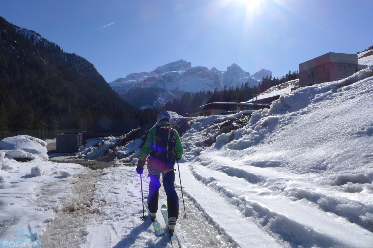 Sveglia alle 4.31 (giusto per dire che l'abbiamo messa dopo le 4.30) e arrivo a Corvara in Badia alle 8.15. Imbrago, scarponi, sci e zaino e via di cabinovia Borest, cabinovia Colfosco, 200 m di pista e skilift Edelweiss. Inizia "il viaggio" nel Sassongher.