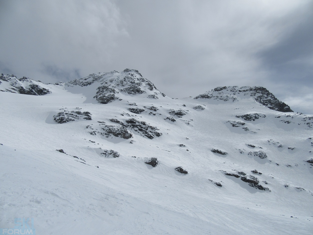 Panoramica sul fuoripista che dal Bouchet scende alla pista Lory. Decisamente interessante.