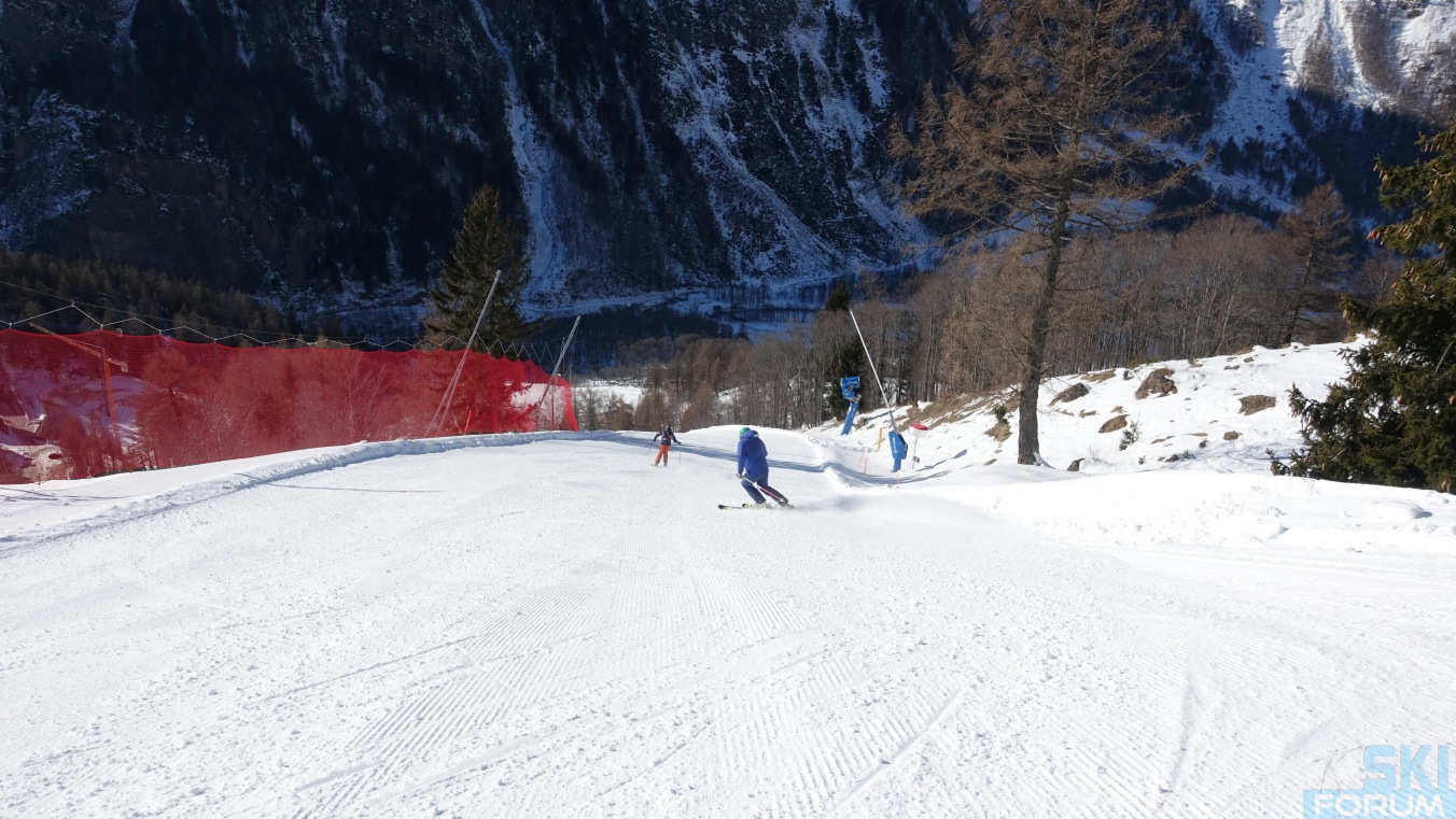 La pista ha anche un bel muro pendente, circa a metà pista, che va sciato con cautela. Termina con una stradina che superata la valletta adiacente la seggiovia riporta alla partenza.