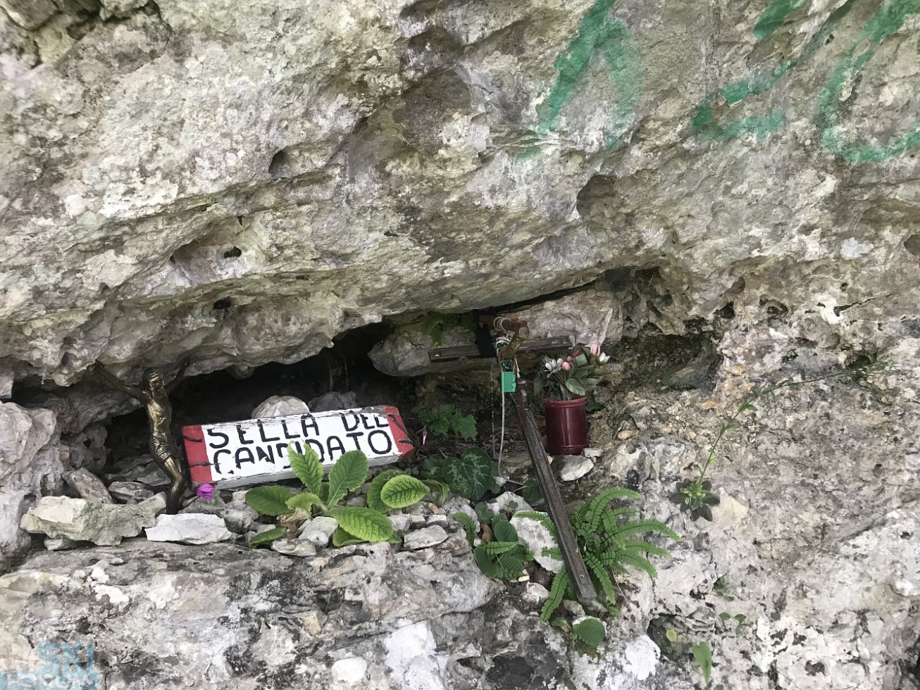 Ecco il "segno" che il ripido sentiero di avvicinamento sta per finire: da questo punto la montagna prosegue per pareti di roccia.