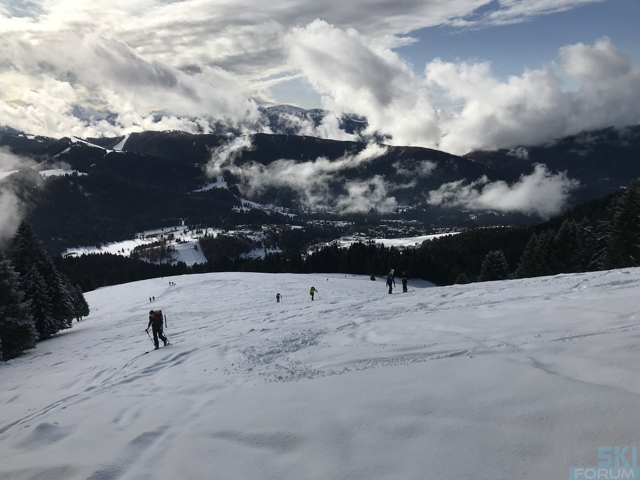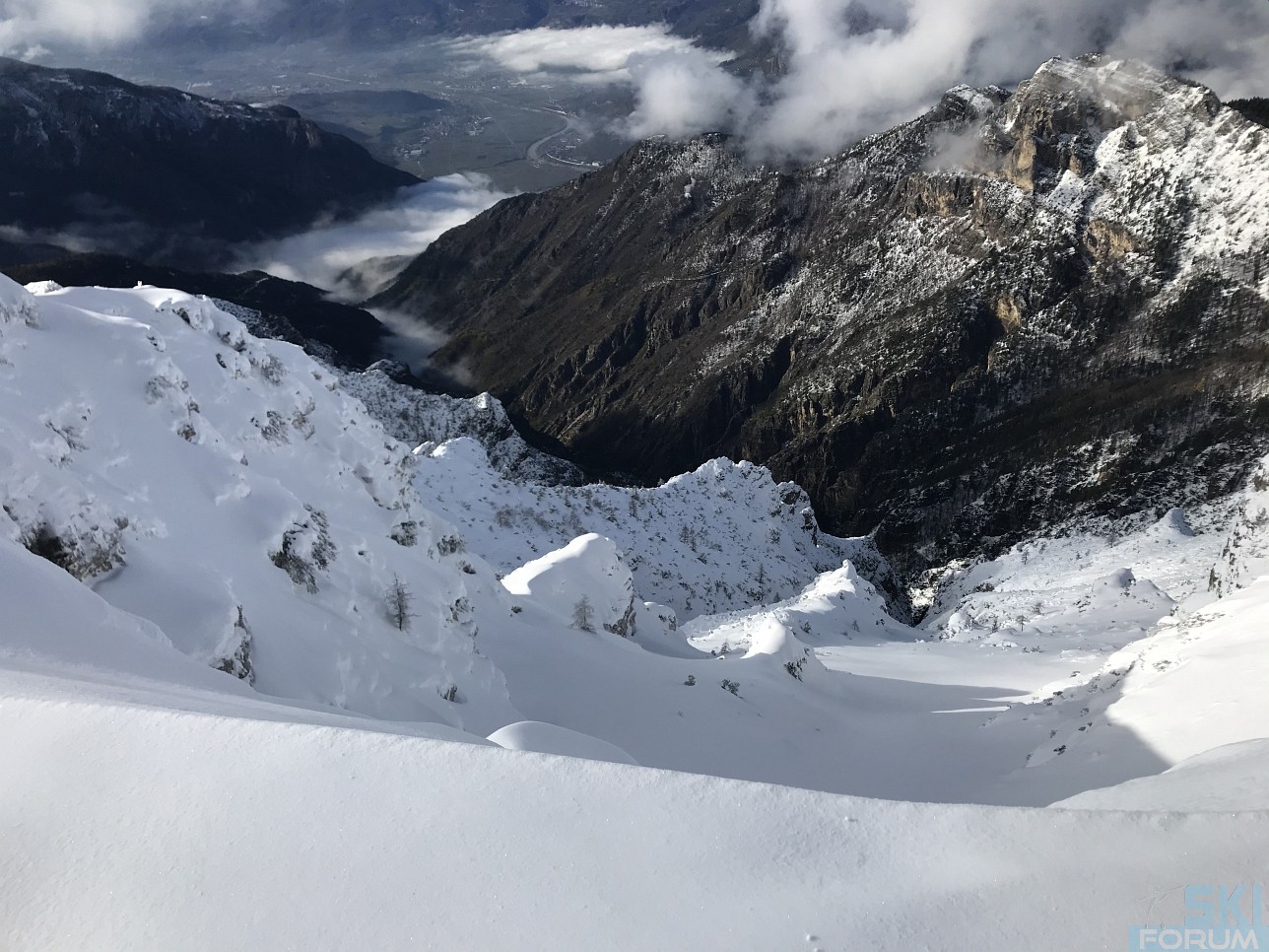 Ericach, che mi ha accompagnato nella gita, lo aveva salito anche un 8 marzo e qui trovate le foto: https://www.skiforum.it/forum/showthread.php?t=90174 guardate la parte alta, nella gita di ieri i mughi sono già tutti sepolti :shock: oltre i 1800 m ci sarà già un metro di neve compatta. Che inizio pazzesco!