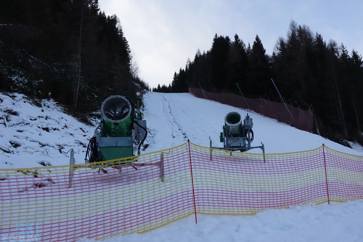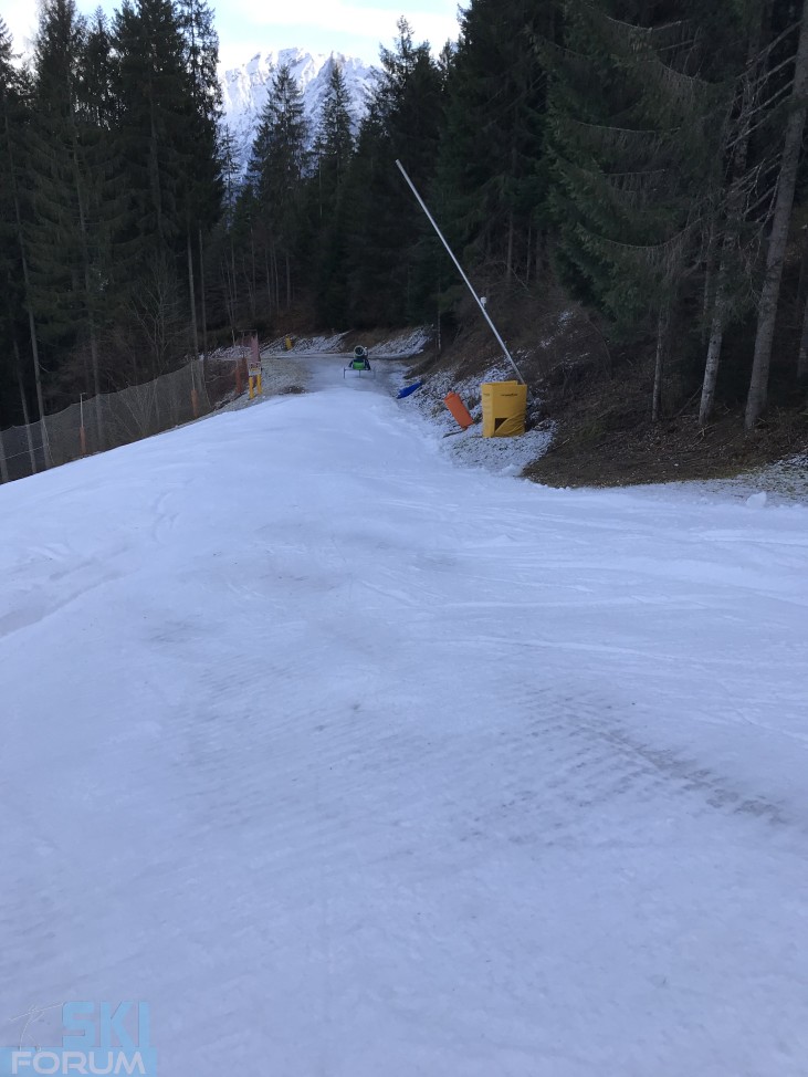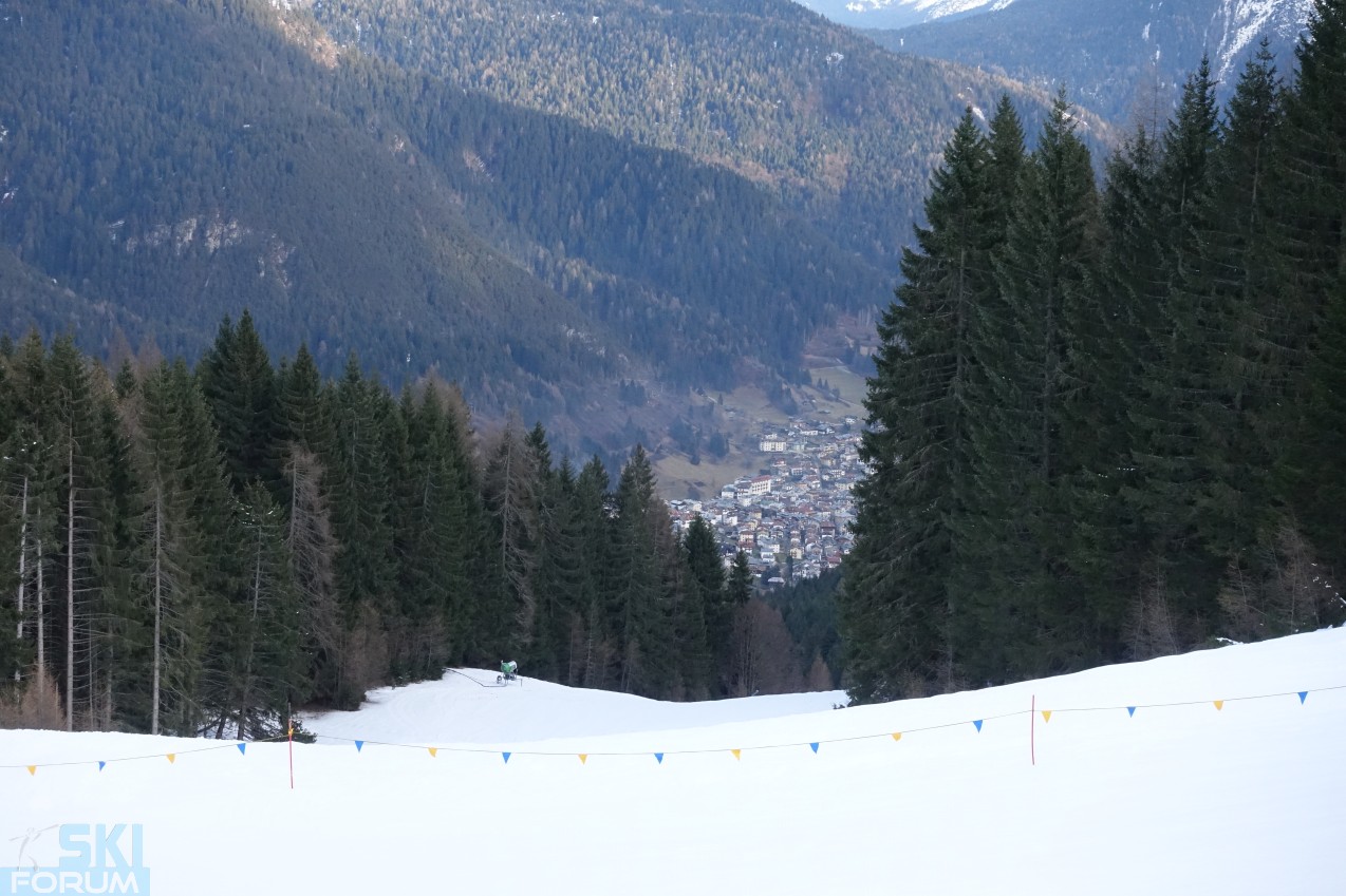 La qualità dell'innevamento programmato sulla carta è buona infatti ci sono ventoloni e non aste. Però la pista quel giorno presentava qualche sasso qua e la oltre che ad alcune lastre. Siamo pur sempre sotto i 1000m di quota ed il miracolo è avere la pista aperta