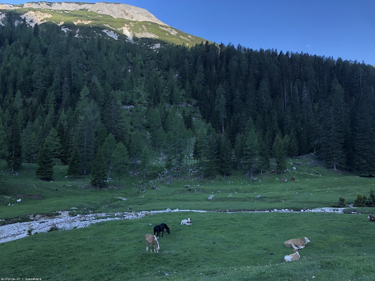 Sono ormai a 2000 m slm, appena entrato nell’Alpe di Fanes Piccolo. Compare alla vista la graziosa Ütia Pices Fanes