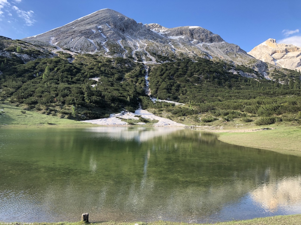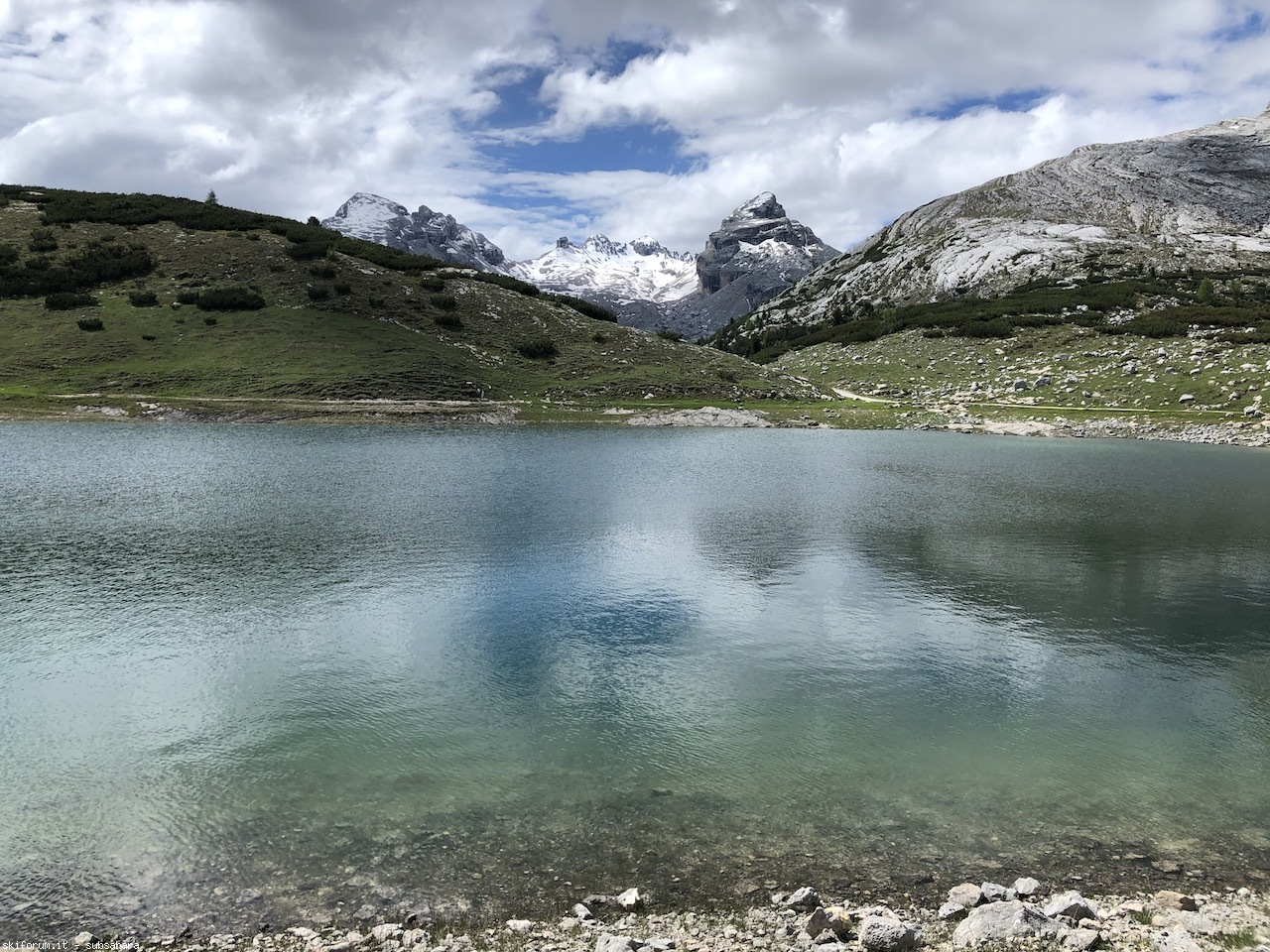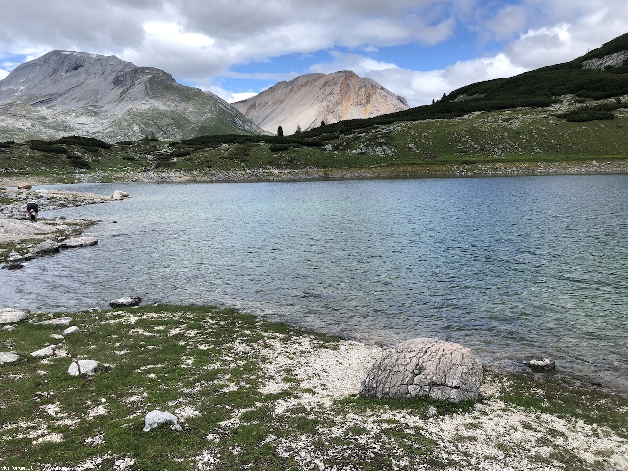 Perdo una ventina di metri di quota e raggiungo il pittoresco lago di Limo, ai piedi del Col Bechei