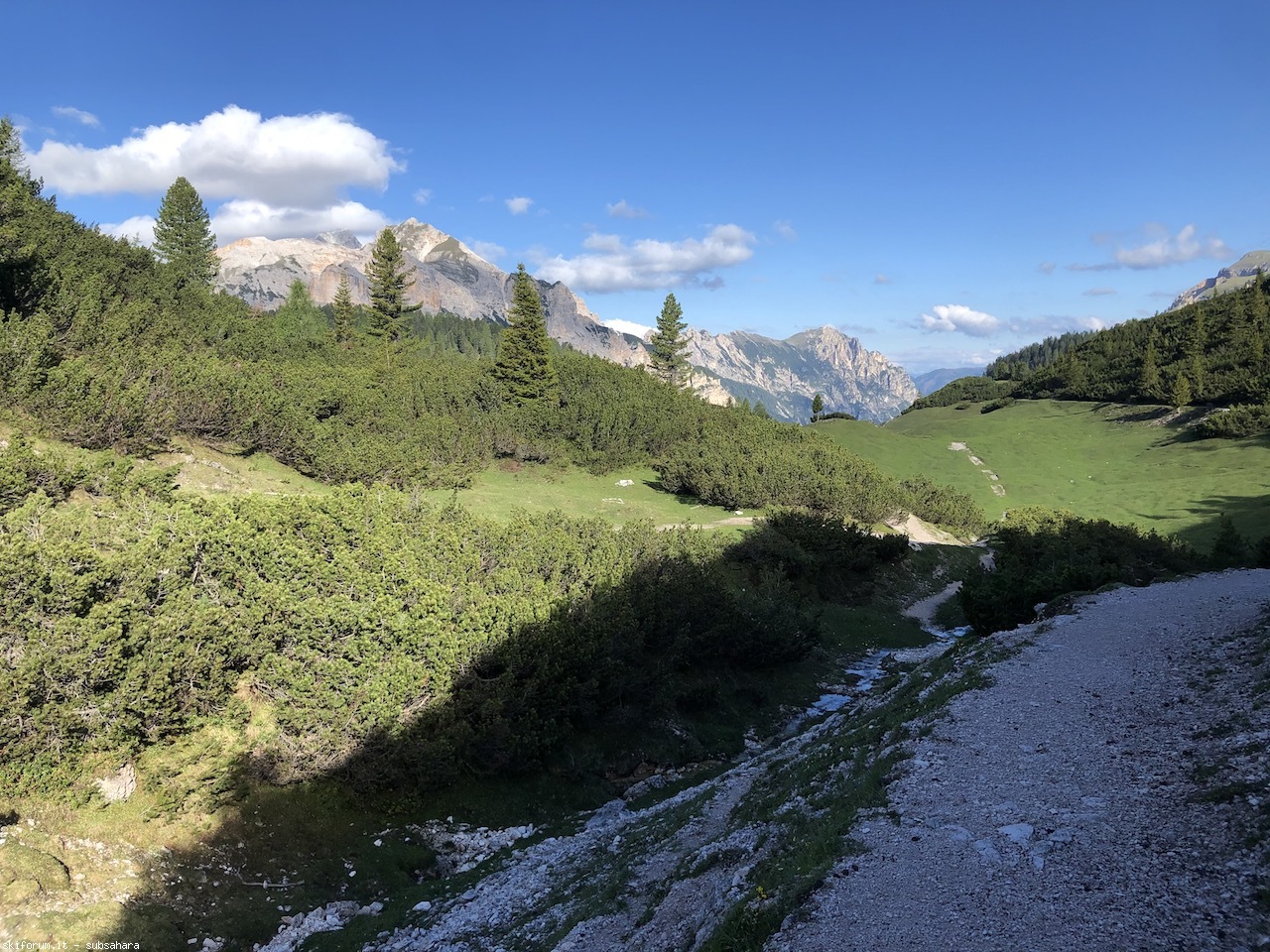 Alle 10:40, ritemprato dall’opportuna pausa, mi lascio il rifugio Fanes alle spalle