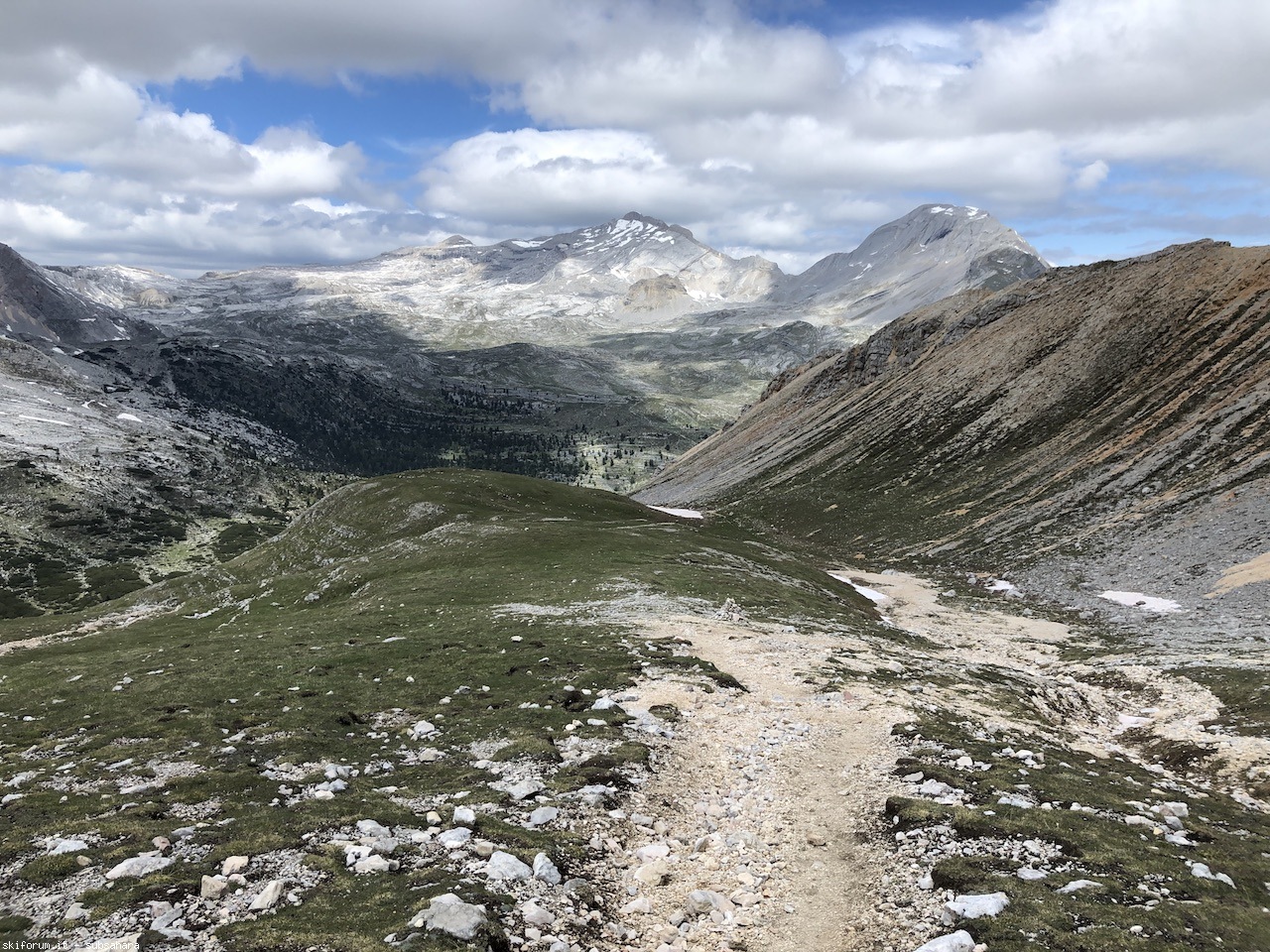 Sto per abbandonare il bacino dell’Adige per rientrare in quello del Piave. Davanti a me l’inconfondibile sagoma del monte Castello, le cime di Furcia Rossa e infine, tutto a sinistra, il Vallon Bianco