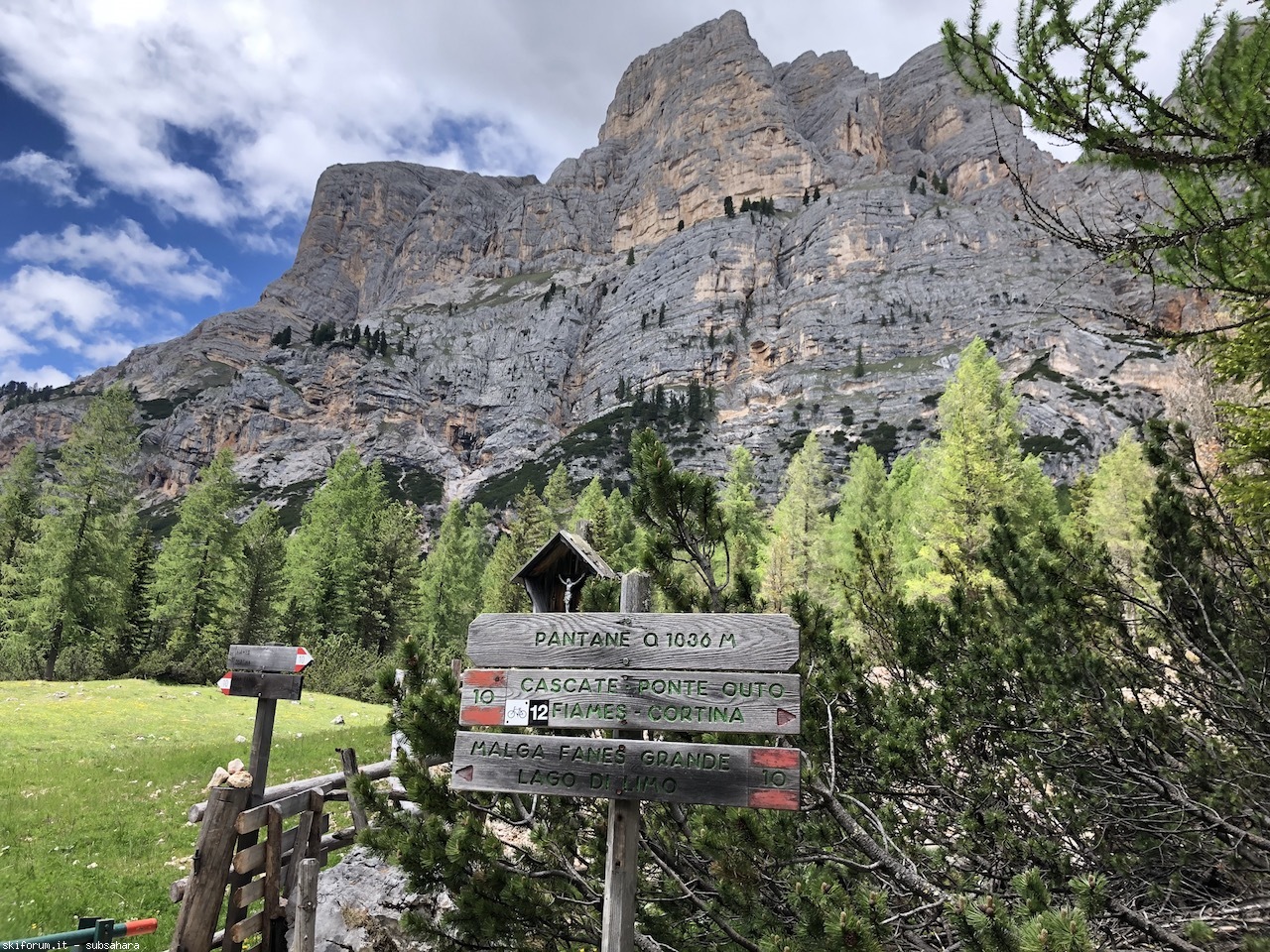 Appena messo piede nell’amata Anpezo un cartello mi avverte che siamo in località Pantane, a 1836 m slm. Dietro I contrafforti meridionali del Col Bechei