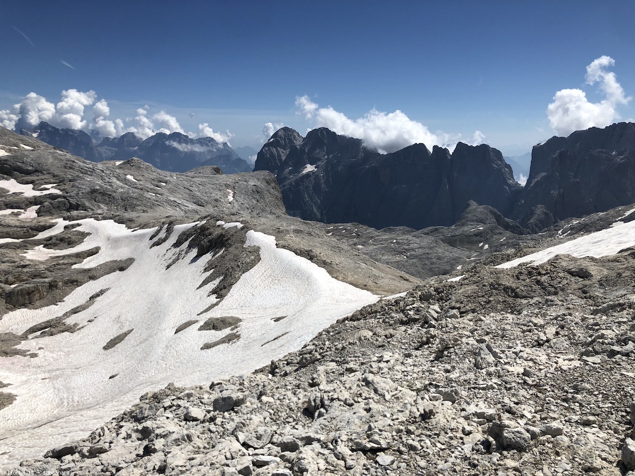 Il nome di quest’ultima si spiega facilmente: l’attuale rifugio Treviso venne costruito alla fine dell’Ottocento dalla sezione di Dresda del DÖAV e, immagino, portava il nome di Dresdnerhütte (come quello nella valle di Stubai).
