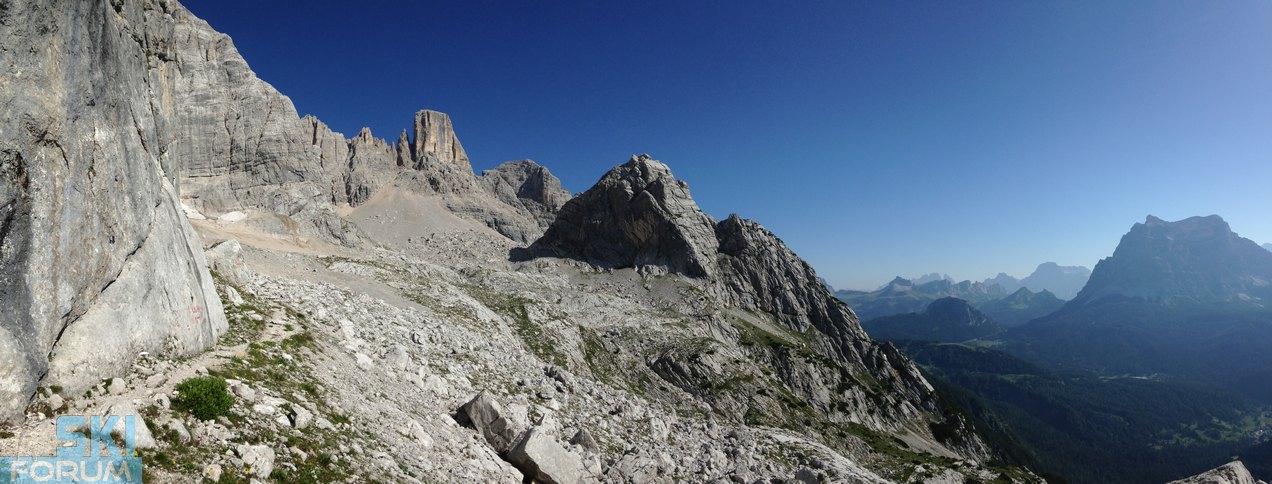 - discesa al Van della Sasse tramite l'impegnativa Ferrata Tissi (tratto verde)