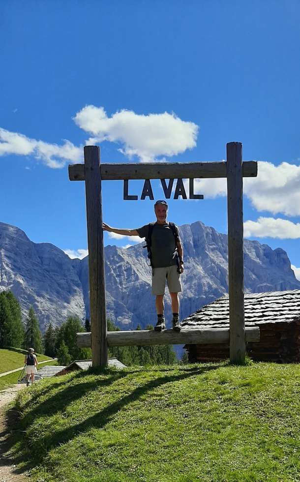 Per il secondo anno consecutivo decidiamo di soggiornare a La Val in un bellissimo e recentemente rinnovato hotel; quello che ci ha riportato qui è la cortesia, la disponibilità e la passione del giovane proprietario che gestisce in maniera impeccabile la sua piccola struttura. Un'altra calamita che ci ha ricondotti qui è sicuramente quel confortante senso di isolamento che ritengo si debba ricercare quando si va in montagna. La Val, pur vicina pochi minuti alle località più blasonate, permette infatti di sentirsi un pò in disparte...questo il panorama dalla nostra camera