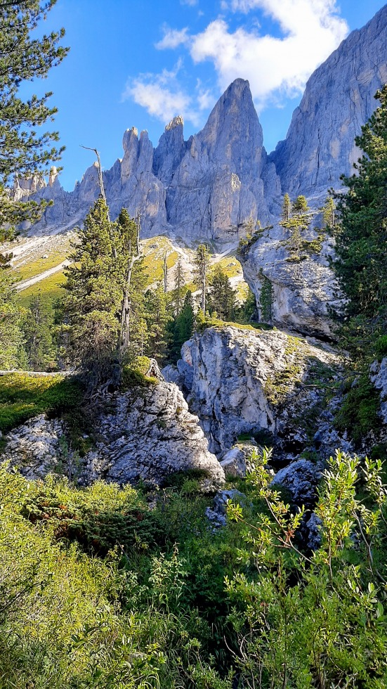 I 360 gradi del percorso ti permettono di vedere il Sass in scorci sempre diversi, si fa fatica a pensare che sia la stessa montagna di mezz'ora prima; il giro è abbastanza lungo (5/6 ore) e l'unica difficoltà è la salita alla forcella di Putia...in realtà nulla di che ma mia moglie ha trovato comunque il modo di maledirmi