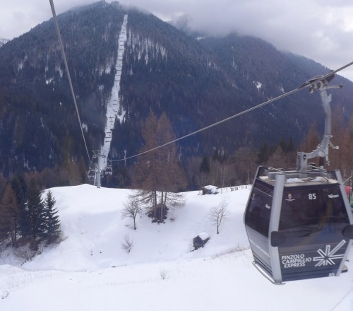 Lo sciatore che vuole passare da Pinzolo a Madonna di Campiglio e viceversa impiega 16 minuti per compiere l'intero percorso.