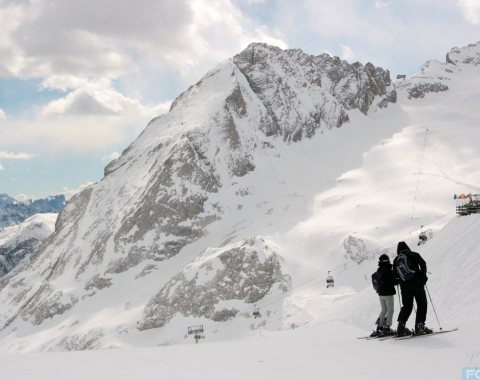 Da Porta Vescovo si scende per la pista Salere e poi Alpenrose fino alla località di Pont de Vauz da dove parte la cabinovia Fodom grazie alla quale si raggiunge in pochi minuti il passo Pordoi, a differenza della zona di Arabba esposta a nord, qii il sole è più presente e illumina le piste alte. Dal Pordoi si sale ancora con la seggiovia Lezuo-Belvedere collegandosi con la skiarea di Canazei in Val di Fassa. Le piste che tornano al passo, come la Belvedere 1 presenta un primo tratto abbastanza pendente, per poi addolcire la pendenza e consetire di tirare delle curve da favola su una neve spesso compatta al punto giusto ma non ghiacciata.