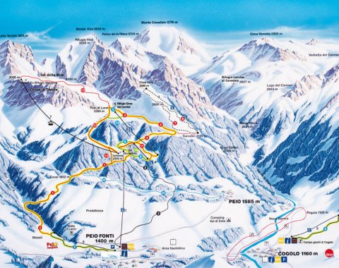 La parte più bella della comprensorio è senza dubbio la pista Val del Mite, raggiungibile con un funifor: la partenza del tracciato è a quota 3000 metri ed si sviluppa per 6 km nel bel mezzo del parco naturale circondata dalle vette dell'Ortles-Cevedale. Per i più esigenti è possibile scendere fino al paese per un totale di 1600 metri di dislivello, tra i più elevati del Trentino.
