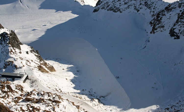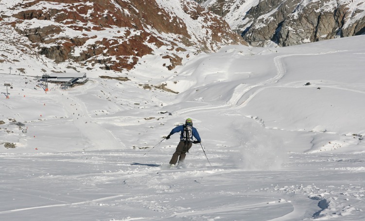 Qui ci sono le piste più ripetute e frequentate. Un veloce e comodo impianto a cabinovia porta in pochi minuti dai 2685 m circa ai 3290 m slm circa. Dalla stazione a monte partono alcune belle piste di media pendenza, molto larghe e spesso con ottima neve ideali per curve condotte ad alta velocità. La parte alta dell'impianto dotato di stazione intermedia serve uno snowpark ed una pista di boardercross. Ci sono anche alcuni itinerari freeride che scendono sotto la linea