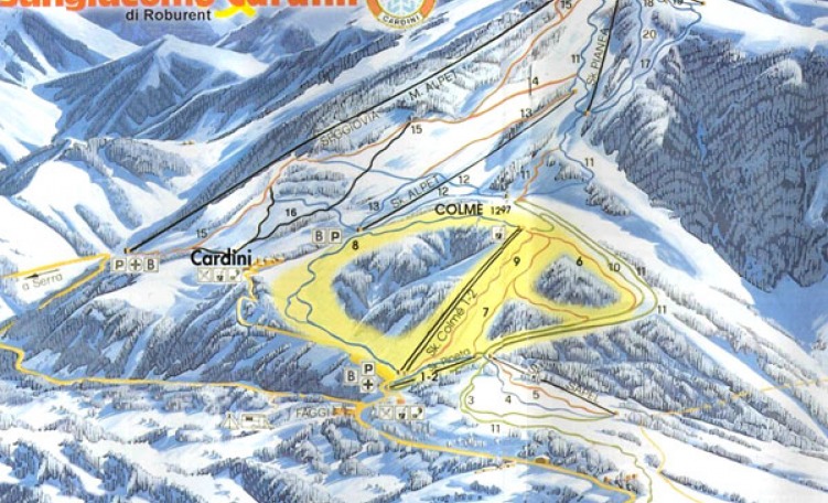 Le piste vanno dai 1000 m circa fino ai 1611 m slm del Monte Alpet e si sviluppano attorno al paesino di Bric Colmè. Ci sono complessivamente 8 impianti di cui due seggiovie che sorvono circa 35 km di piste di tutte le difficoltà. Servito dallo skilift Giardina c'è un bel campo scuola per i principianti e neve permettendo viene allestito uno snowpark.
