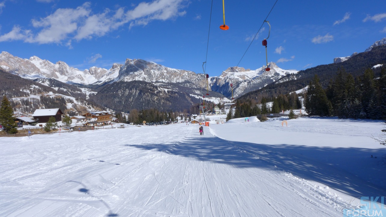 Si sale in quota con la seggiovia Mont de Seura da dove partono 3 piste adatte ad ogni sciatore: la nera Alpha, la rossa Bravo e lo skiweg Charly che rientra fino al Monte Pana passando per la zona Tramans dove parte una seggiovia che porta sotto il Piz Sella e garantice il collegamento con il Plan de Gralba. Un secondo collegamento è garantito da uno skiweg che si raccorda sulla parte bassa della Saslong, tuttavia questo itinerario è aperto saltuariamente.