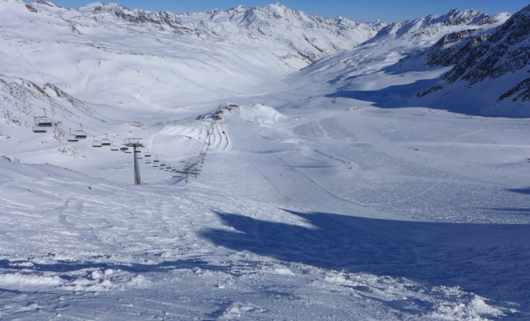Il comprensorio sciistico fa parte del consorzio Ortler Skiarena ed è famoso per la sua lunga stagione scisitica che va da settembre a maggio. Si accede con la funivia dei ghiacciai fino in quota a 3212 metri dove si ha un panorama eccezionale e da dove partono le larghe piste della seggiovia Grawand con una discreta pendenza considerando che sono situate su un ghiacciaio. Più dolci le piste degli skilift Finail fino al Gletschersee, da dove partono le due seggiovie parallele per tornare ai piedi del Grawand, qui la pista Leo Gurschler offre già un pendio molto tecnico per allenarsi. Dalla zona del lago si può salire anche sul versante opposto dell'Hintereis con una biposto e scendere con una bella rossa divertente e varia, oppure si percorre la lunga discesa verso valle. A metà si incontra la seggiovia Teufelsegg che serve due piste con un panorama su tutto il ghaicciaio e la valle, mentre la parte bassa della pista di rientro continua con una pendenza elevata e svariati passaggi tecnici; è possibile ripetere l'ultima parte con la seggiovia Roter Kofel che da accesso anche alla Teufelsegg ma per tornare in quota si deve riprendere la funivia.